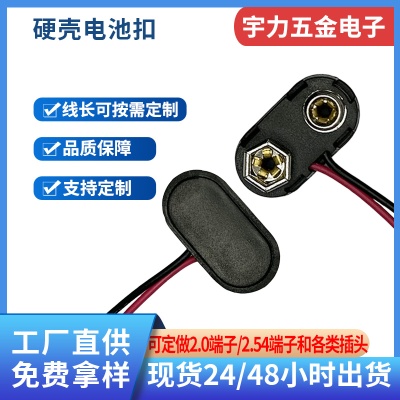 定制T型9v电池硬扣 玩具仪器连接线夹铜线端子接头塑壳9v电池卡扣