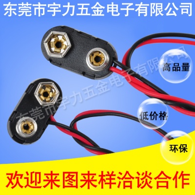 定制T型9v电池硬扣 玩具仪器连接线夹铜线端子接头塑壳9v电池卡扣