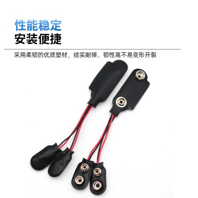 T型硬扣9v电池扣 音频线接万用仪表仪器电池连接器塑胶9v电池线夹