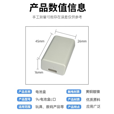 Type-C充电口电池盒9V电池壳锂电池壳6F22锂电池盒9V方块锂电池盒