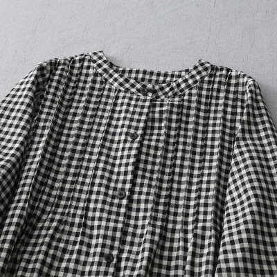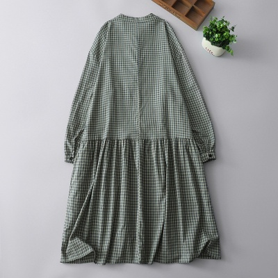 实拍2025春季新款日系格子连衣裙复古休闲宽松中长款棉质长袖裙子