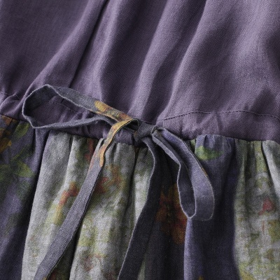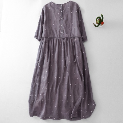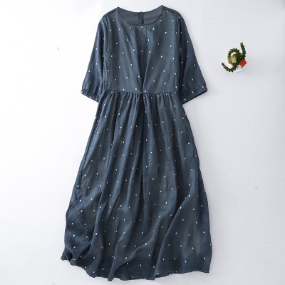 2025夏季新款轻盈高端棉麻印花圆领大摆文艺气质连衣裙宽松文艺女