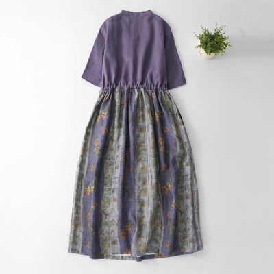 2026夏季新款复古民族风印花拼色文艺旅行中长款宽松显瘦连衣裙女