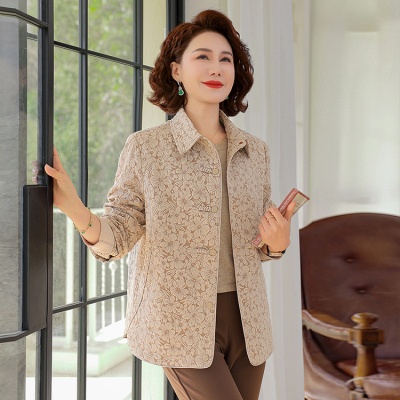 2025年春秋妈妈女装翻领夹克外套新款中老年女款时尚洋气夹克外套