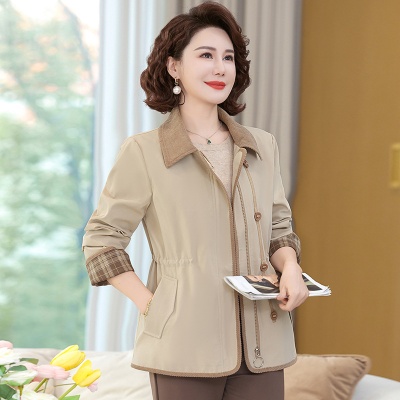 妈妈翻领外套春2025年春季新款修身收腰时尚夹克外套女款一件代发