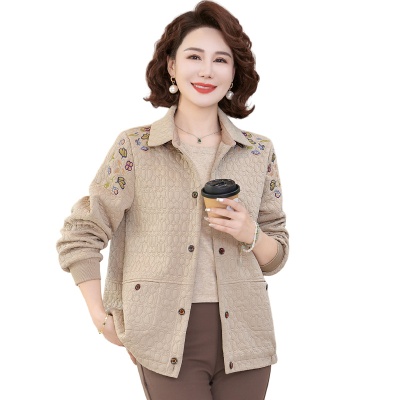 妈妈春装短款休闲外套翻领小个子时尚刺绣夹克衫中老年女装上衣