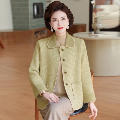 妈妈秋装外套高贵时尚夹克上衣2025新款中老年女装洋气质针织开衫