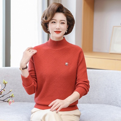 中老年女装上衣秋冬装中长款衣服新款半高领毛衣妈妈洋气套头休闲