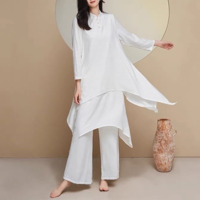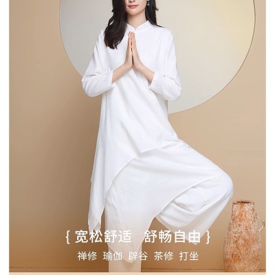 瑜伽服套装女白色宽松昆达里尼冥想疗愈禅服辟谷舞韵禅修服优雅型