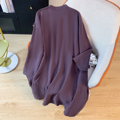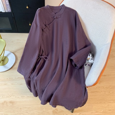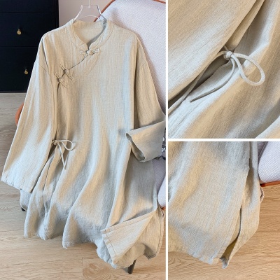 实拍2025新款通勤中式文艺盘扣系带棉麻衬衫长款禅意茶服立领上衣