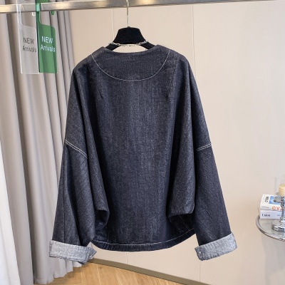 实拍现货2025年秋季新品宽松休闲V领长袖牛仔夹克外套百搭上衣女