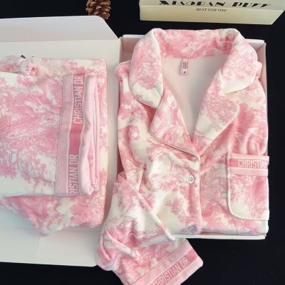 半边绒睡衣女冬季新款加绒加厚保暖纯色家居服套装可外穿