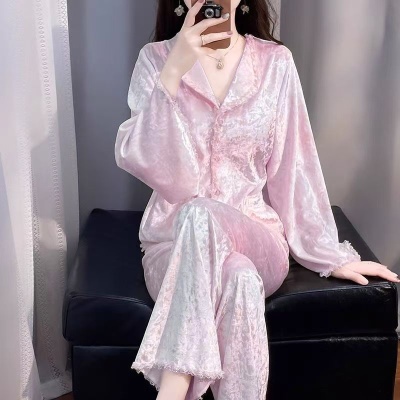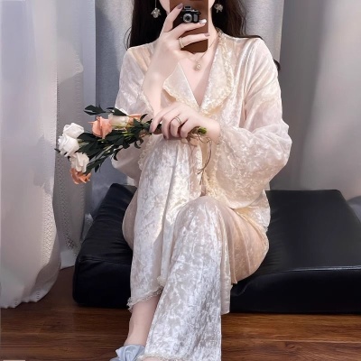 春季新款金丝绒开衫长袖可外穿时尚风家居服套装保暖睡衣女