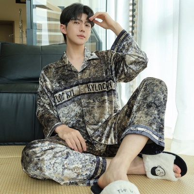 金丝绒男款系列秋冬新款男士金丝绒长袖开衫家居服套装