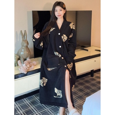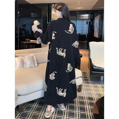 冬季新款上新加绒加厚半边绒开衫长款睡裙女睡袍浴袍