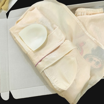 实拍#冰丝带胸垫睡衣三件套女士家居服套装开衫拉布布杏色卡通