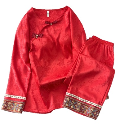 2025春季新款中国红新中式提花睡衣女长袖盘扣家居服套装高级感国