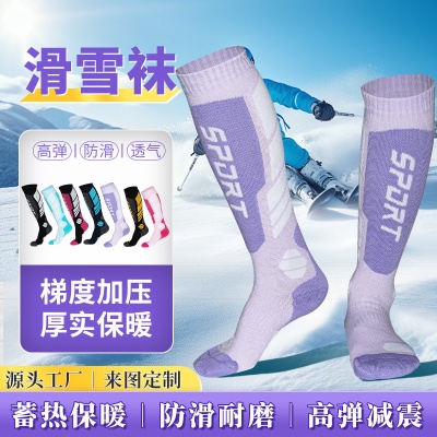 儿童滑雪袜加厚保暖冬季登山袜防滑毛巾底户外成人雪地长筒运动袜