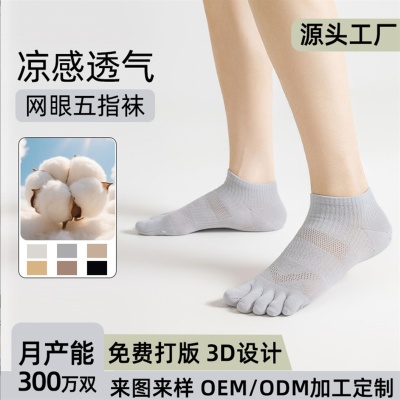定制五指袜子男女春夏季竹纤维棉袜短筒抗菌防滑点胶不掉跟分趾袜