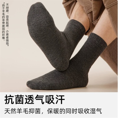 羊毛袜子男秋冬中筒袜美利奴羊绒袜东北保暖加厚男士冬季长袜批发
