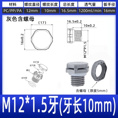 M12*1.5牙(牙长10)灰色带螺母