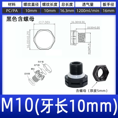 M10(牙长10)黑色带螺母