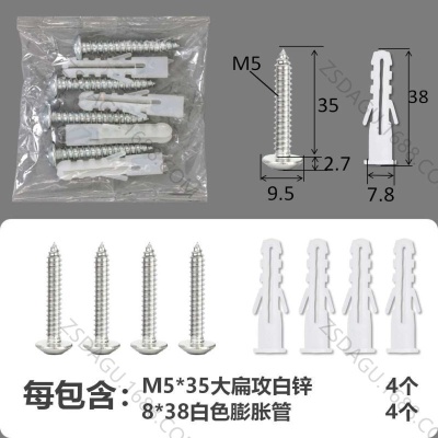 配件包大扁攻M4*16白锌白色膨胀管4+4件套
