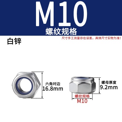 商品名称:防松螺母六角螺帽自锁螺母细牙尼龙防松螺母锁紧配件防脱过盐雾