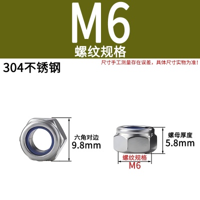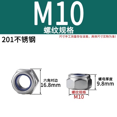防松螺母六角螺帽自锁螺母细牙尼龙防松螺母锁紧配件防脱过盐雾