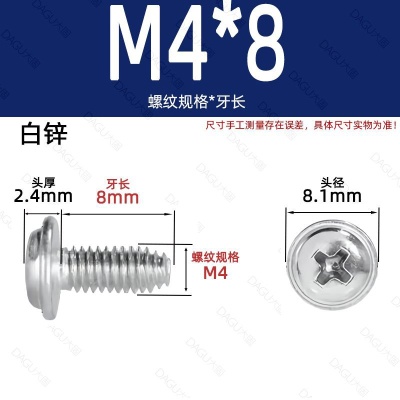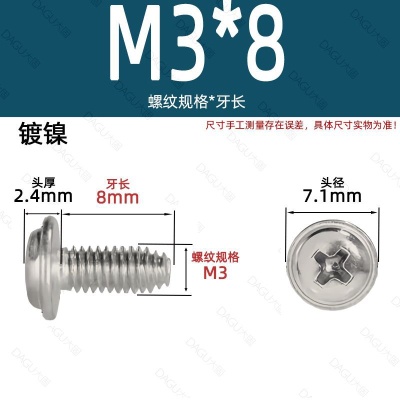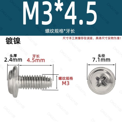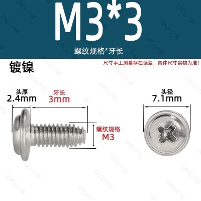 商品名称:带介缩嘴带垫缩咀缩嘴十字镀镍白锌螺钉压花防转螺丝非三角牙自锁