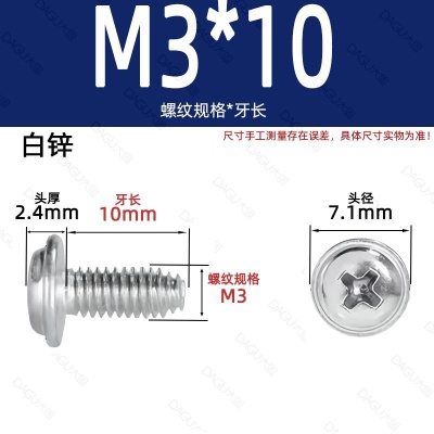 带介缩嘴M3*10(白锌)