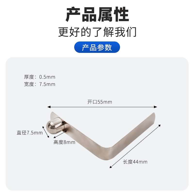 商品名称:实心单珠V型弹簧片晾衣杆专用 管内定位弹片锰钢弹扣7.5x8x44mm