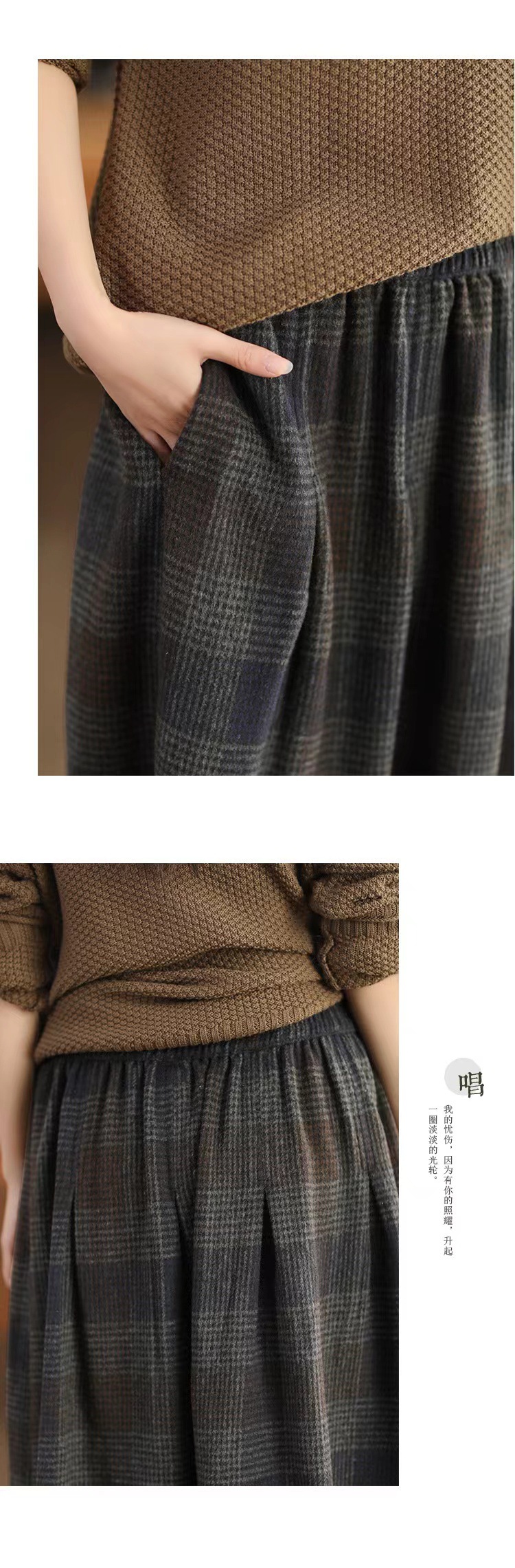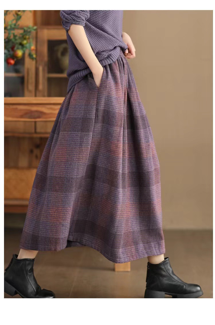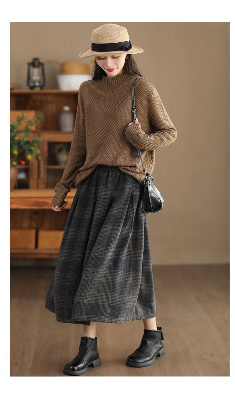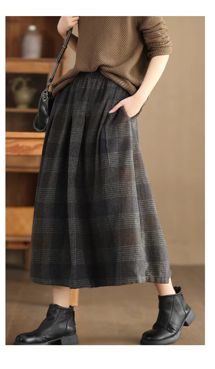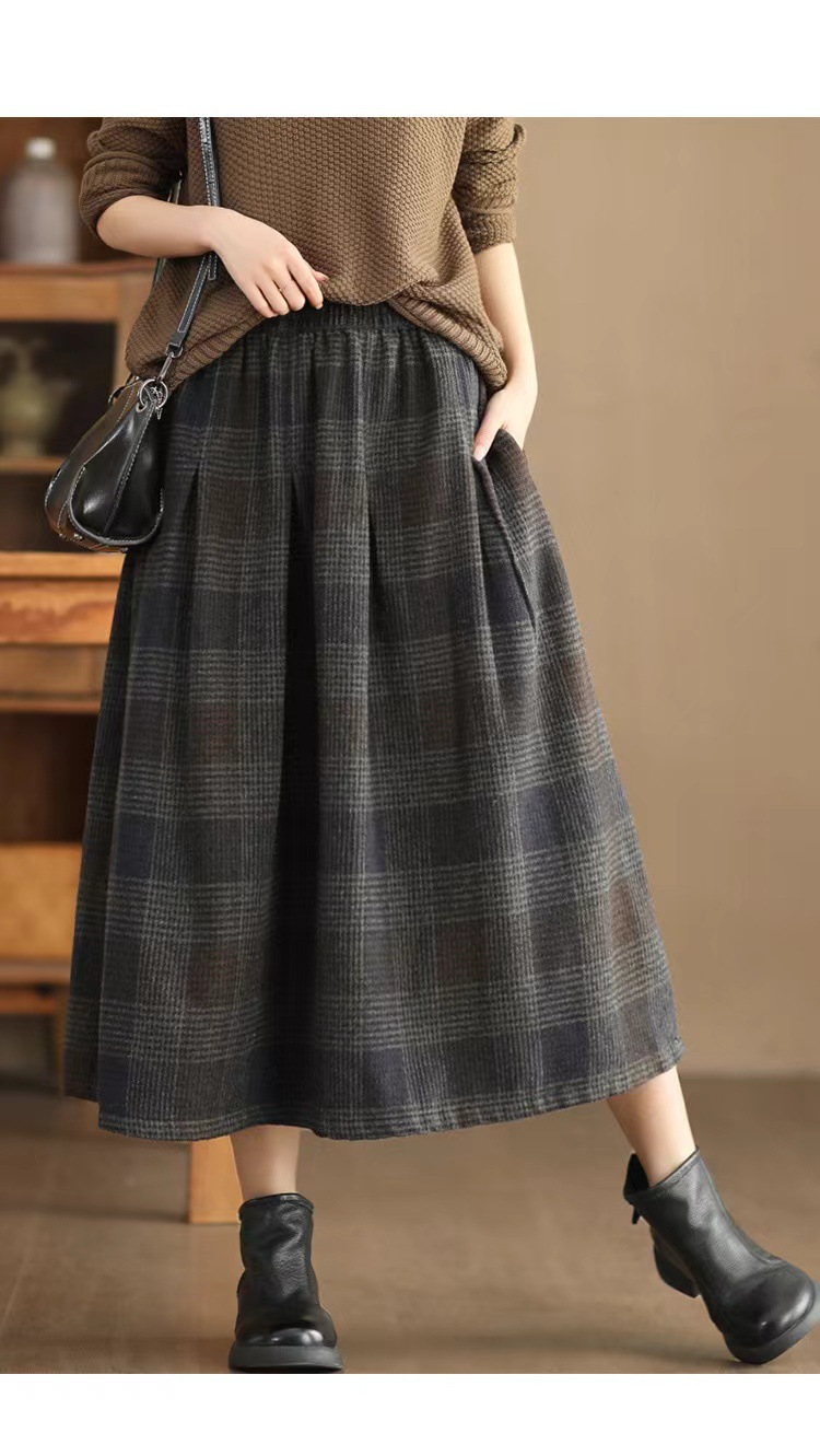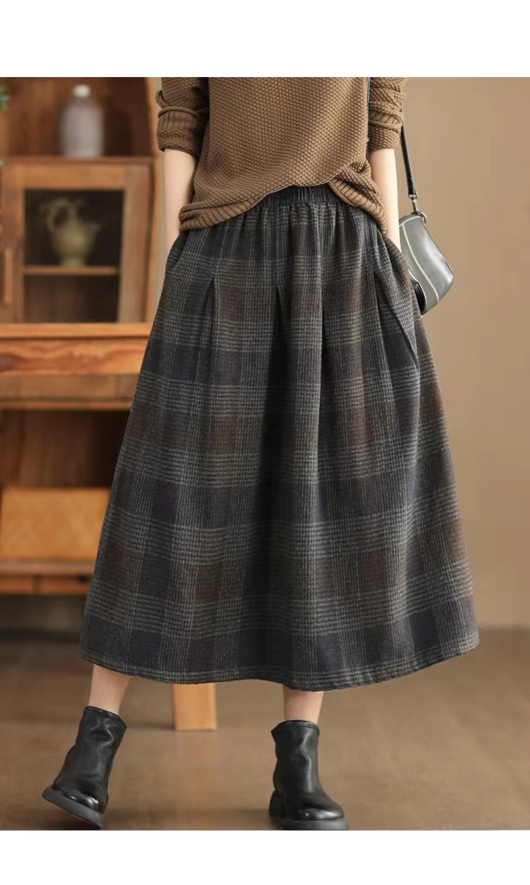 园园美衣定染10%羊毛半身裙女色织格纹保暖A字裙中长款毛呢裙子冬