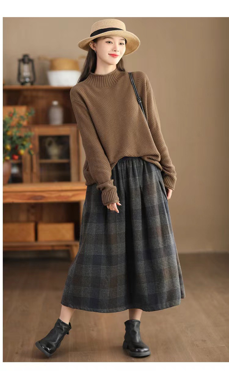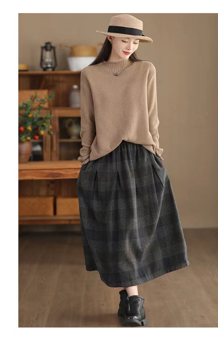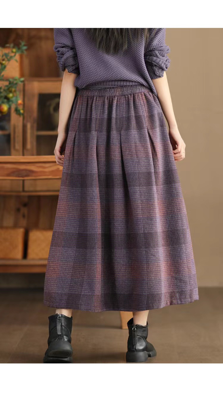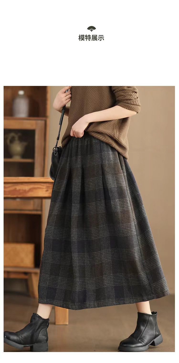 商品名称:园园美衣定染10%羊毛半身裙女色织格纹保暖A字裙中长款毛呢裙子冬