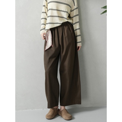 商品名称:云长 系带莱赛尔棉阔腿长裤春季新款女生加厚休闲裤棕色裤子现货