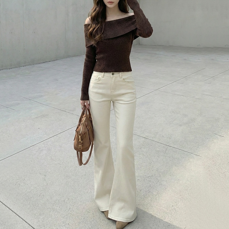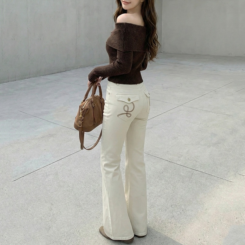 云长 天丝莱赛尔棉牛仔裤女休闲刺绣喇叭裤春季新款显瘦浅色长裤