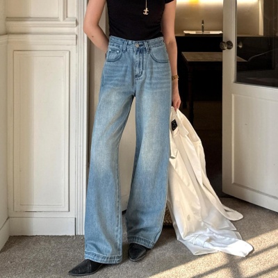 云长 棉高腰直筒牛仔裤女小个子显瘦裤子港风长裤春季新款 K0075
