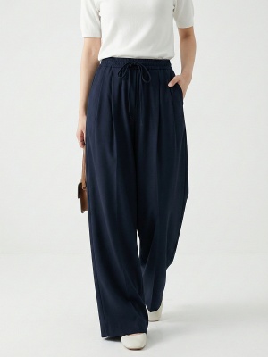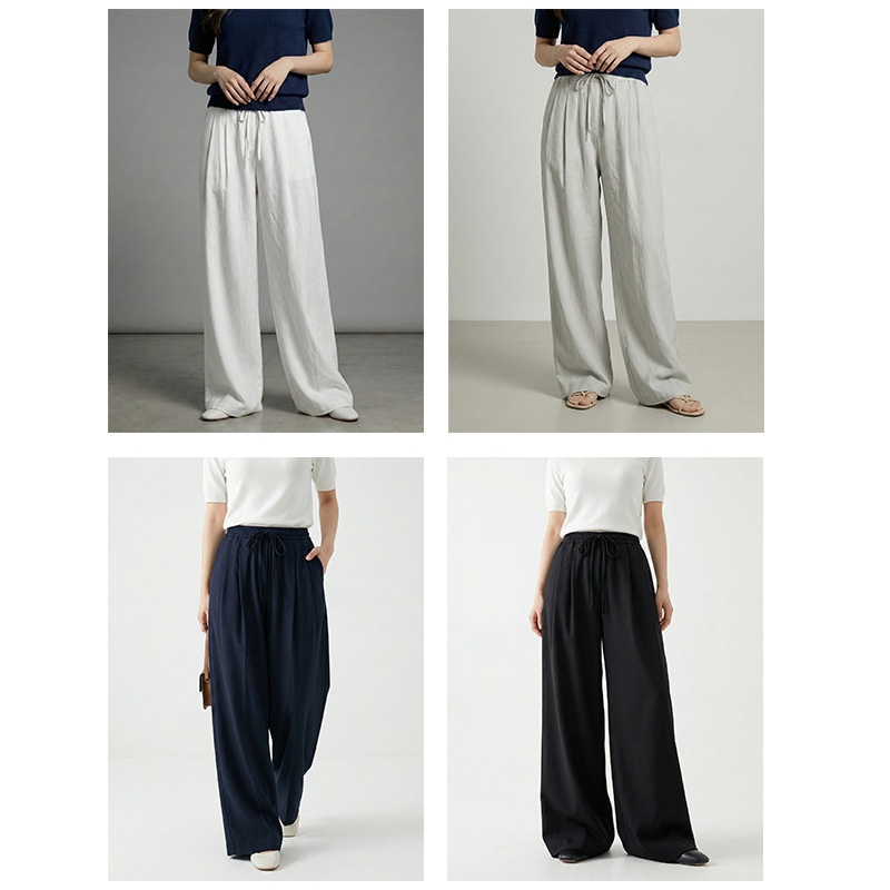 云长 春夏薄款系带阔腿裤女仿亚麻空气感休闲裤日系拖地长裤批发