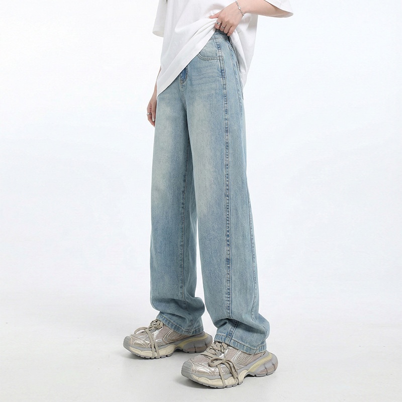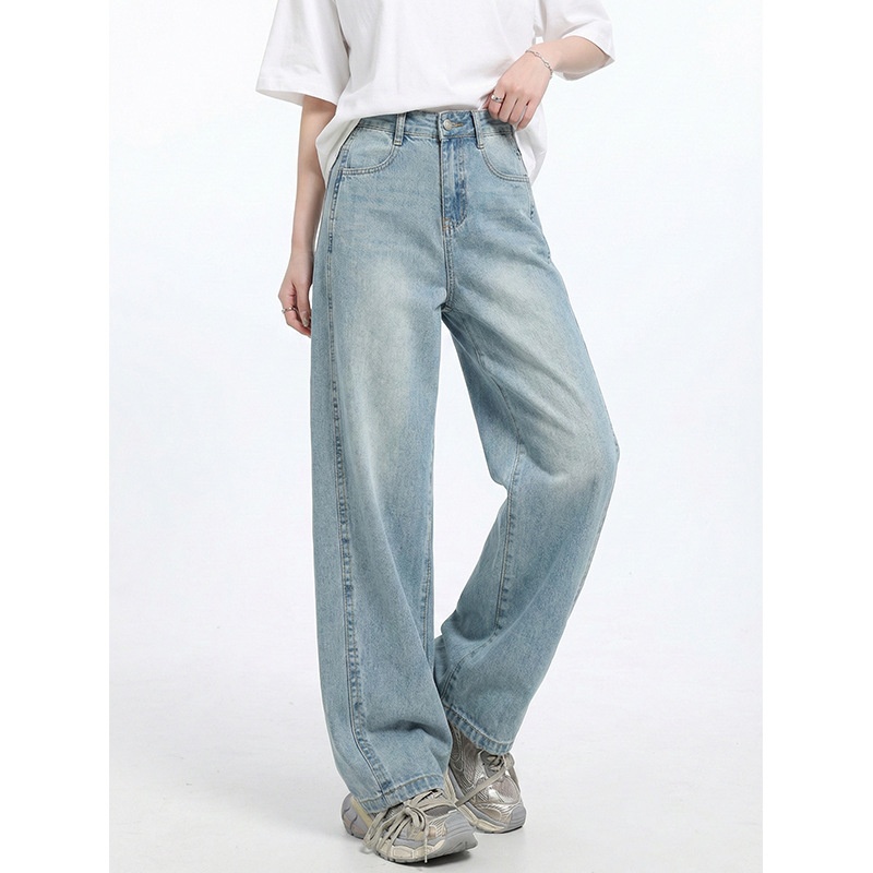 云长 高腰牛仔裤女夏季薄款直筒显瘦垂感阔腿裤梨型身材拖地长裤