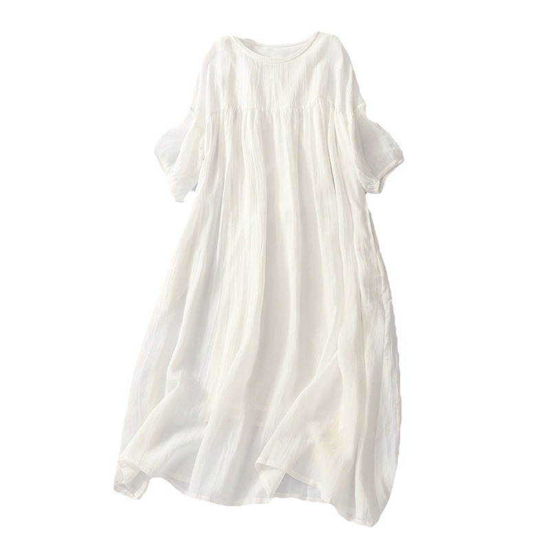 超仙白色宽松文艺苎麻连衣裙女高端气质仙气飘逸长裙裙子2023夏款