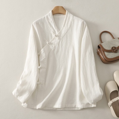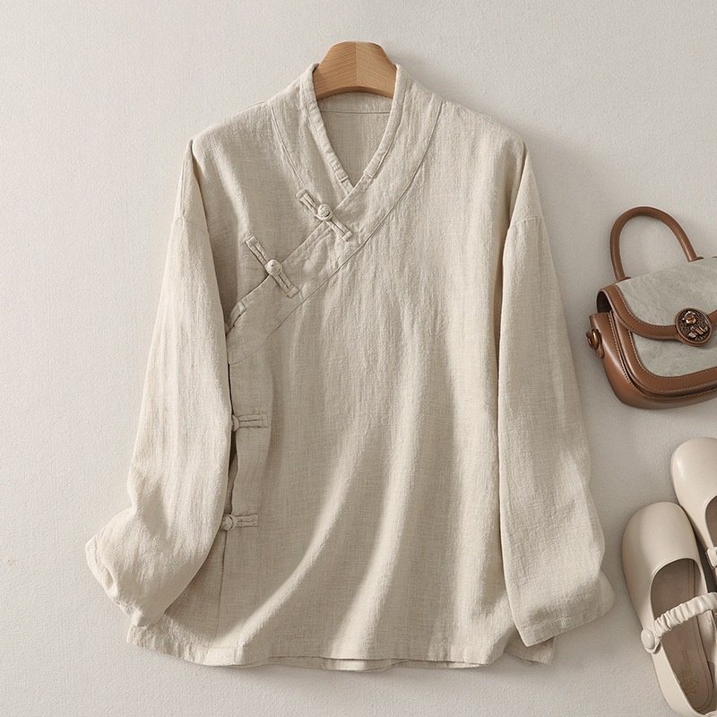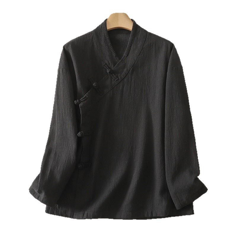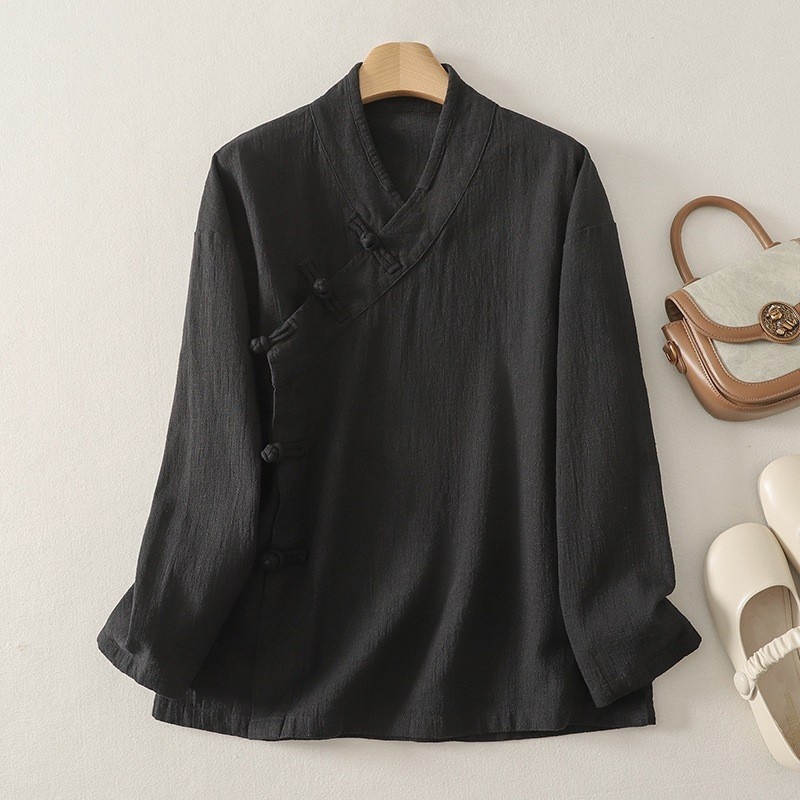 实拍新中式休闲上衣女中式盘扣斜襟长袖衬衫禅修居士服茶服开衫
