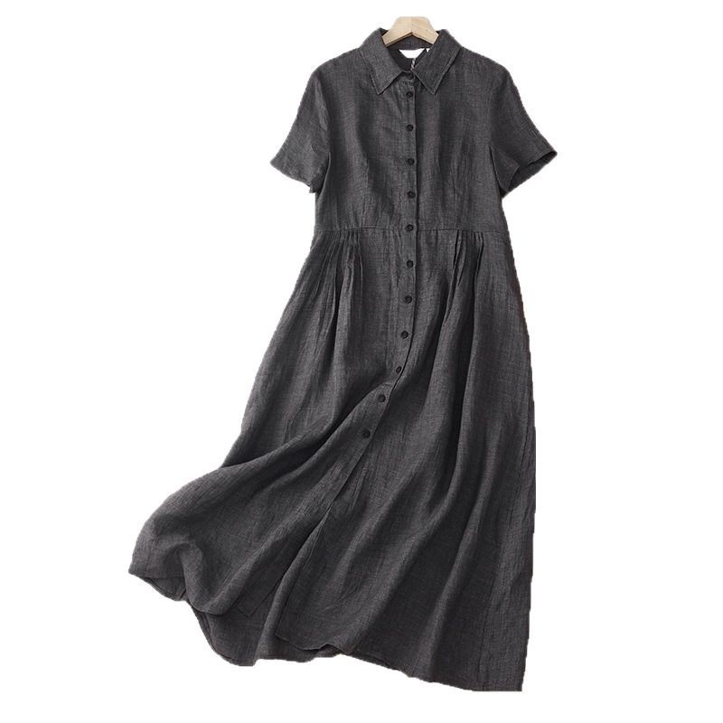 实拍2025夏季新款棉麻气质连衣裙女韩版设计感小众衬衫裙高级感
