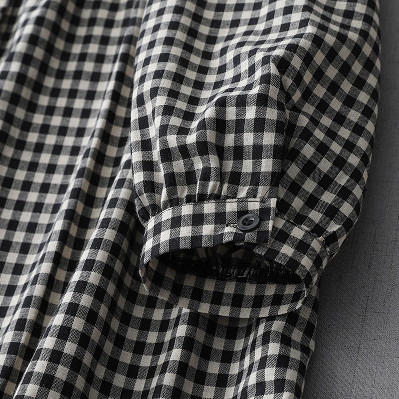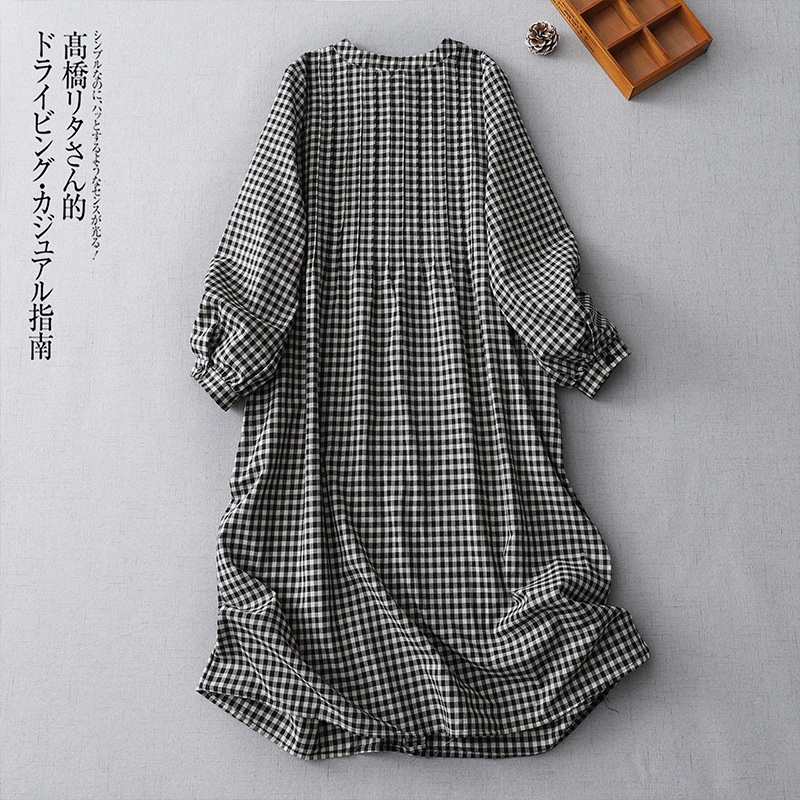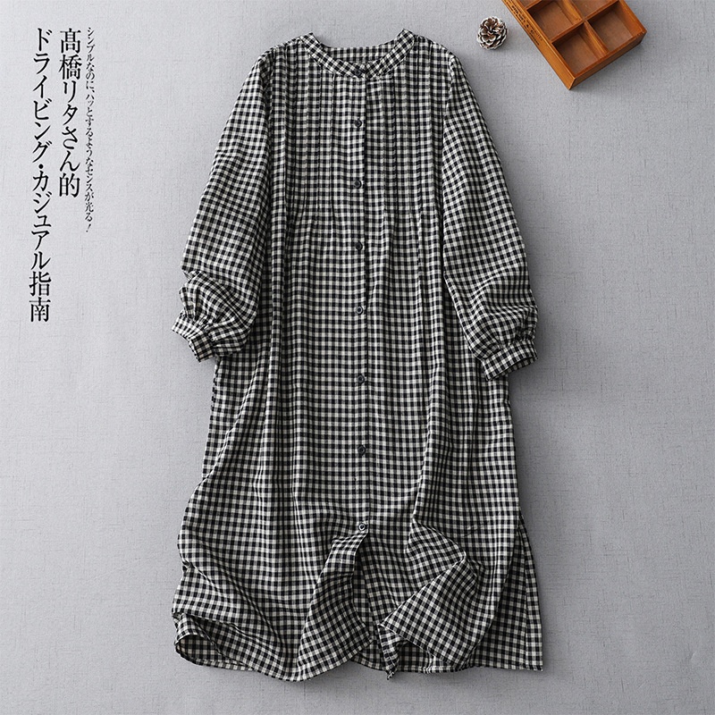 实拍日系复古格子长袖衬衫裙2024秋季叠穿慵懒风小个子棉麻连衣裙