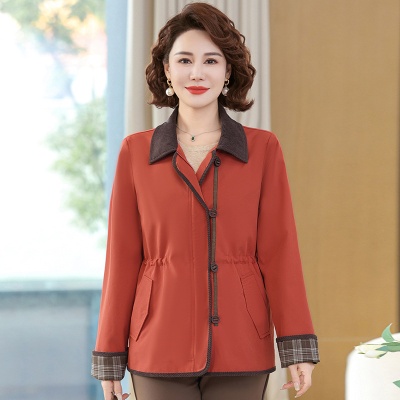 商品名称:妈妈翻领外套春2025年春季新款修身收腰时尚夹克外套女款一件代发
