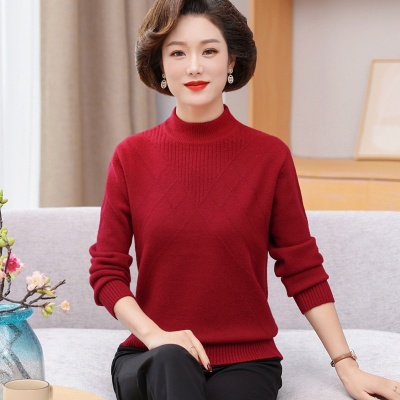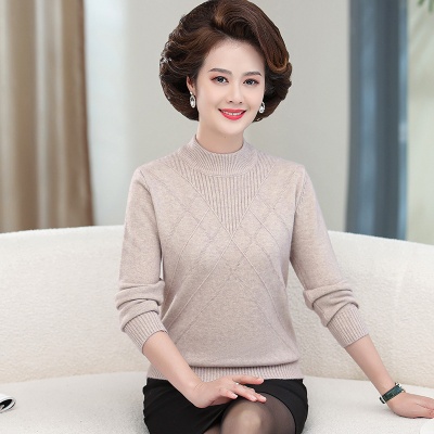 商品名称:中老年女装上衣秋冬装中长款衣服新款半高领毛衣妈妈洋气套头休闲