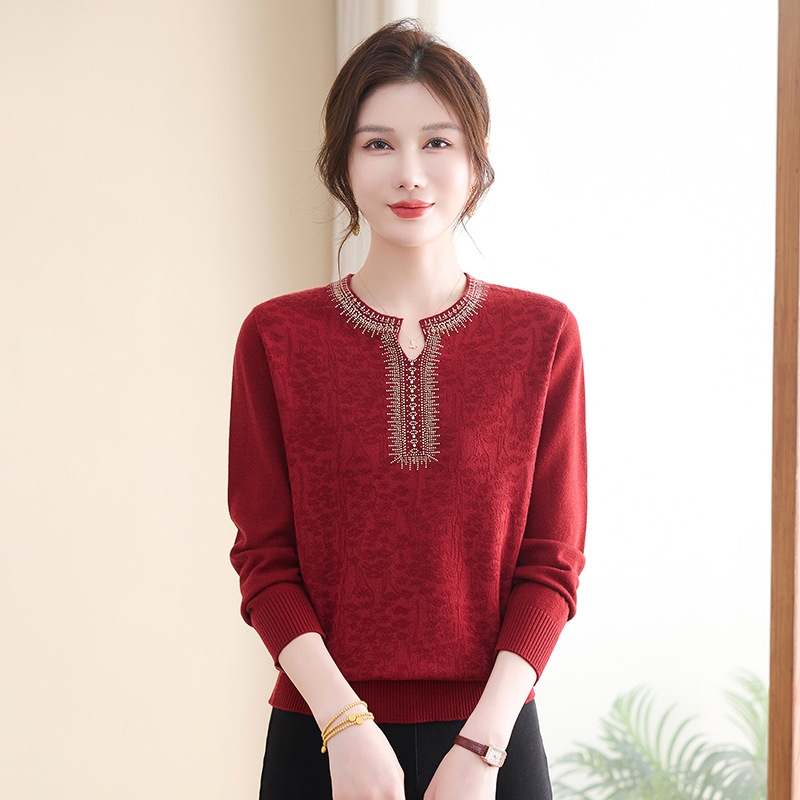 商品名称:2025新款中年妈妈春秋打底小衫洋气毛衣中老年女秋冬针织衫上衣服