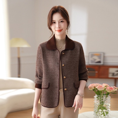商品名称:2025翻领开衫秋季新款妈妈百搭外套时尚针织开衫女上衣中年外搭