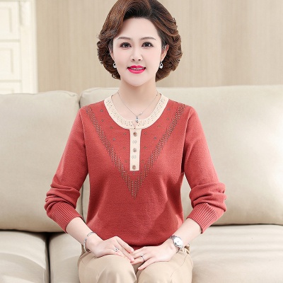 商品名称:妈妈装春秋新款长袖洋气打底衫上衣40岁50中老年女宽松毛衣针织衫