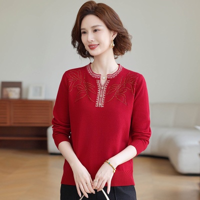 商品名称:2025妈妈秋装长袖打底小衫减龄中老年女装秋冬外穿上衣洋气针织衫