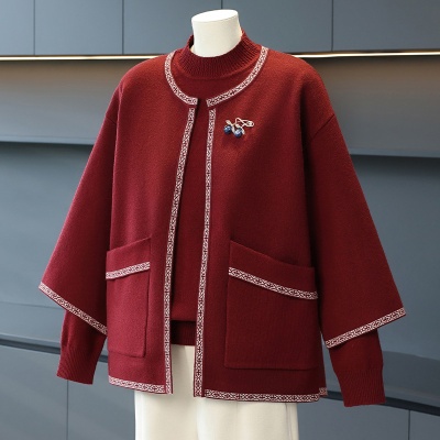 商品名称:2025妈妈秋装新款国风毛衣外套时尚中老年女秋冬针织开衫两件套装